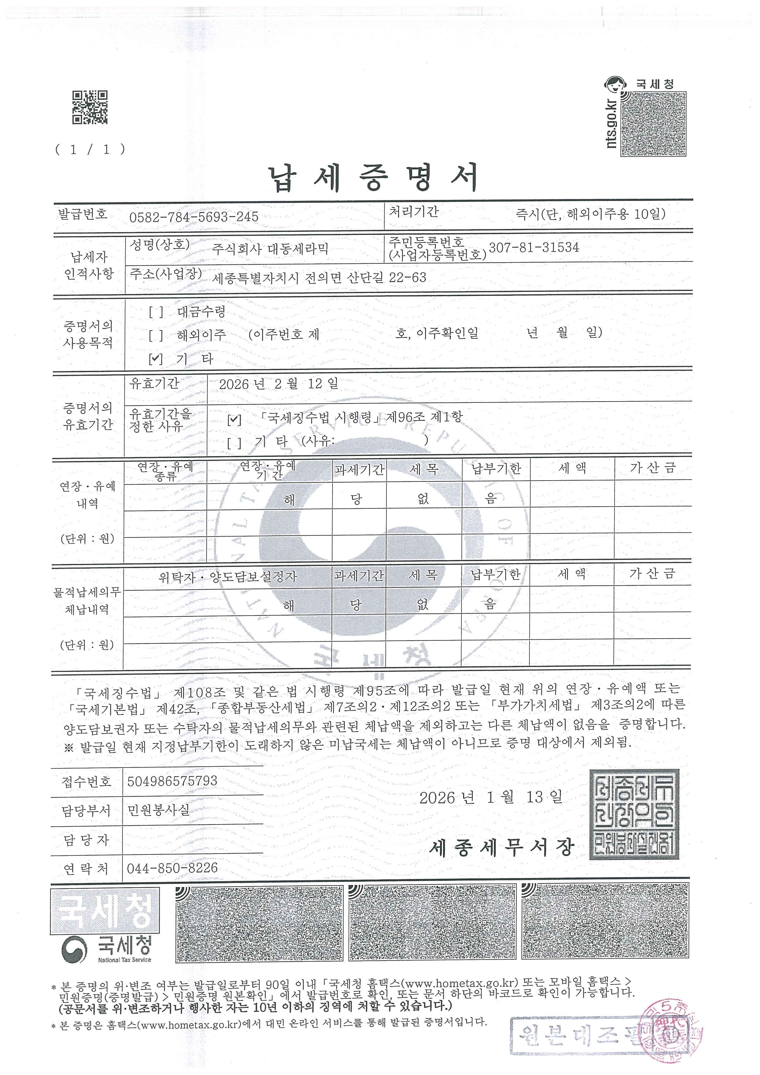 (´ëµ¿»ê¾÷)Áö¹æ¼¼³³¼¼Áõ¸í¼