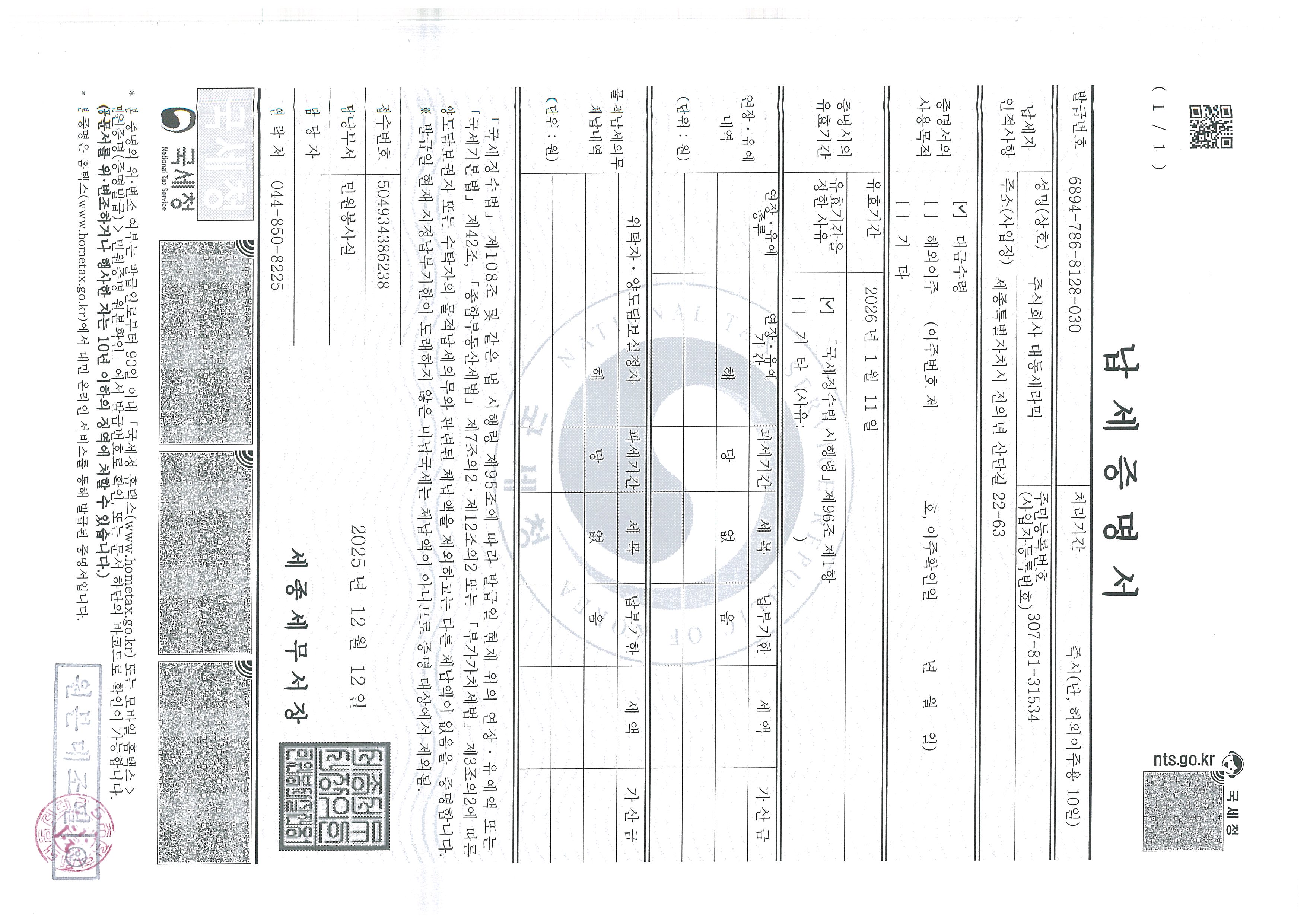 (´ëµ¿»ê¾÷)Áö¹æ¼¼³³¼¼Áõ¸í¼